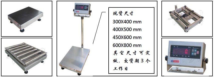 稱重儀表: LEF數(shù)碼顯示,清晰易讀, 內(nèi)置可充蓄電池,交直流兩用 304不銹鋼材質(zhì),抗干擾能力出色 具歸零、扣重、累加、單位轉(zhuǎn)換等功能 多臺面尺寸,量程從30kg到1000kg可選 可充電電池供電,充電一次可連續(xù)使用90小時