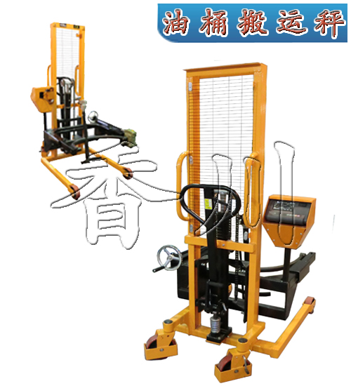 可旋轉(zhuǎn)倒油桶電子秤,液壓升高油桶車電子秤,油桶搬運(yùn)車秤