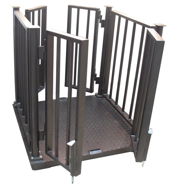 畜牧秤是擁有四只傳感器的電子平臺(tái)秤。秤的平臺(tái)上有圍欄。適用于畜牧場(chǎng)對(duì)豬、牛、羊等牲畜在不同生長(zhǎng)期及出欄時(shí)的稱重?捎梅Q重儀表內(nèi)的蓄電池供電,也可用~220V供電。秤上可選裝有四只移動(dòng)輪,可將電子秤移動(dòng)到各圈舍進(jìn)行稱重。具有稱量精度高、穩(wěn)定可靠、使用方便等特點(diǎn)。